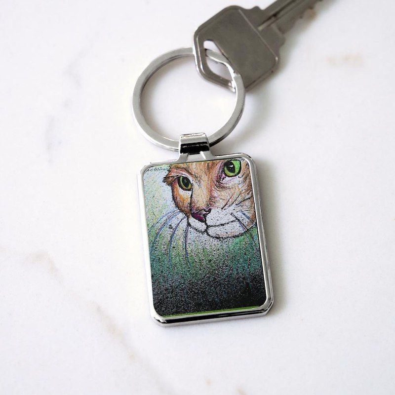 Cat! Animal, pet art! Rectangle Keychain